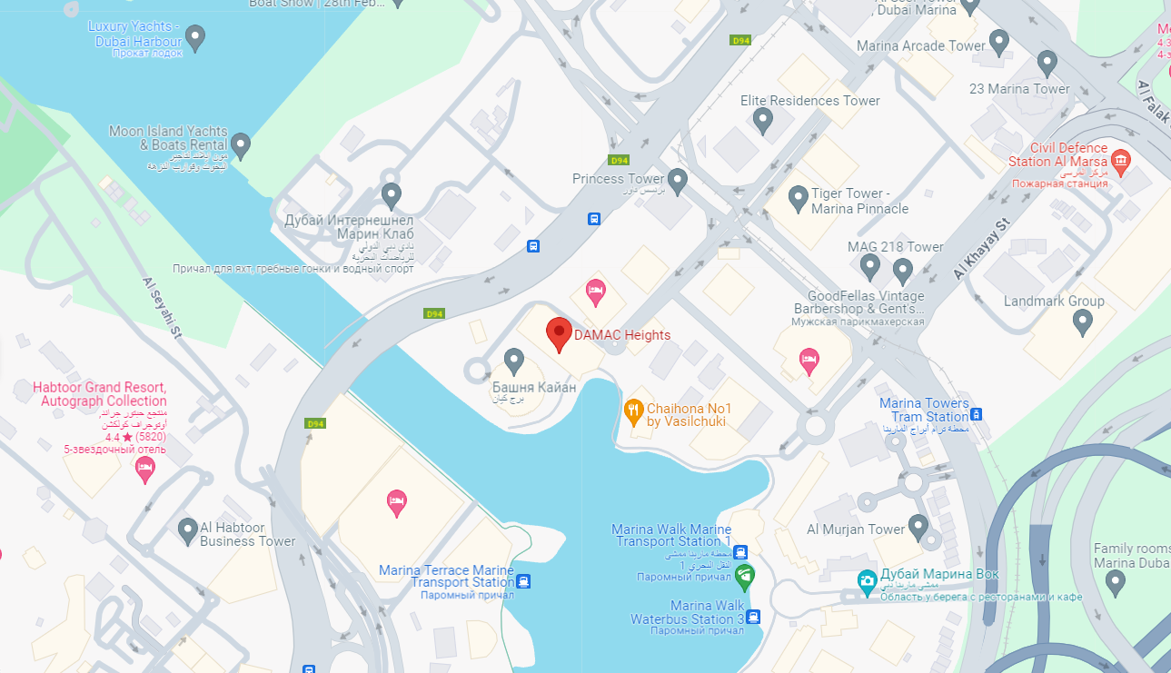 Престижная башня Damac Heights находится в самом популярном районе Дубая - Dubai Marinа в топовой его локации, с одной стороны вид на канал и пристань для яхт и выход на набережную, а с другой стороны шикарный вид на Пальму Джумейра и Персидский залив